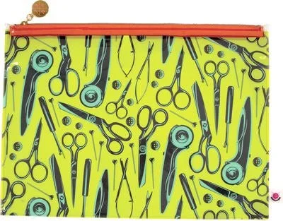 The Medium Project Bag has a full-color printed back panel of Tula Pink's Tools of the Trade design from her HOMEMADE Collection. The front panel is clear and zipper pull is engraved metal. Bag measures 14" x 10"